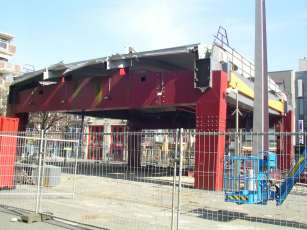 Eindelijk heeft 'de politiek' de knoop doorgehakt en wordt het Podium op de Grote Markt afgebroken. Op de foto's zijn de schamele restanten te zien, het Podium is dus echt door zijn stutten gegaan en 1.7 miljoen (guldens toen nog) ter ziele gegaan. Het 'Podium', een van de geesteskinderen van toenmalig VVD-wethouder Cees van Bemmel (ook van het 'Kasteel Almere'). Toch blijft het jammer deze kapitaalvernietiging want er hadden gewoon veel optredens kunnen plaatsvinden, ook zonder dat hele gevaarte iedere maand te verrijden (tegen veel geld)